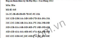 Đáp án kỳ thi tốt nghiệp THPT 2012